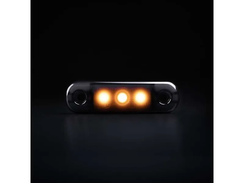 STRANDS Dark Knight Super Dark Slim to kompaktowa lampa pozycyjna boczna (side marker) dedykowana do profesjonalnych zastosowań w pojazdach ciężarowych, przyczepach i naczepach. Dzięki szerokiemu zakresowi napięcia 10-32V lampa pracuje zarówno w instalacjach 12V, jak i 24V. Niewielkie wymiary 84x24x10.4mm pozwalają na dyskretny montaż w dowolnym miejscu pojazdu. Klasa szczelności IP6K9K gwarantuje pełną ochronę przed wodą pod wysokim ciśnieniem i kurzem, co sprawdza się w najtrudniejszych warunkach eksploatacji. Produkt posiada homologacje ECE R148 i R10, zapewniając pełną zgodność z europejskimi przepisami drogowymi. Przewód o długości 240mm ułatwia elastyczny montaż i podłączenie do instalacji elektrycznej. Smukła, ultracienkia konstrukcja (Super Dark Slim) idealnie komponuje się z nowoczesną stylistyką pojazdów, zachowując pełną funkcjonalność i widoczność na drodze. Niezawodne rozwiązanie dla firm transportowych i warsztatów obsługujących flotę pojazdów użytkowych.